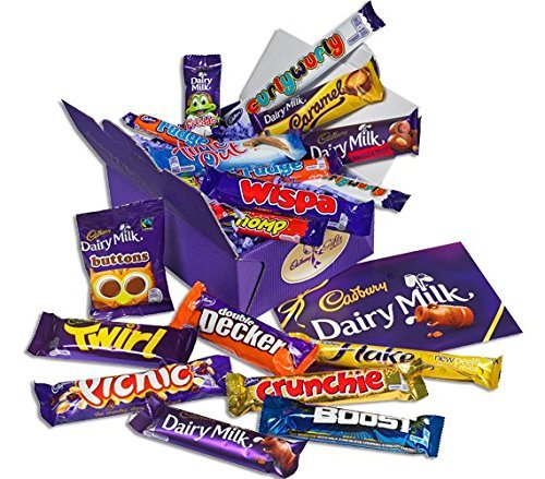 - Contains: 1 x Dairy Milk Bar 45g, 1 x Picnic 48g, 1 x Dairy Milk Fruit & Nut 49g, 1 x Dairy Milk Whole Nut Bar 49g, 1x Cadbury Milk Chocolate Buttons 40g, 1 x Flake 20g , 1 x Wispa 25.5g, 1 x Double Decker 40g, 1 x Curly Wurly 26g, 1x Crunchie Bar 26g , 1 x Twirl 43g, 2 x Fudge 25.5g, 2 x Chomp 23.5g, 2 x Freddo 18g, 1x Freddo Caramel 19.5g. (Please note some bars from multipacks and may be substituted for another Cadbury bar of equal value)).
