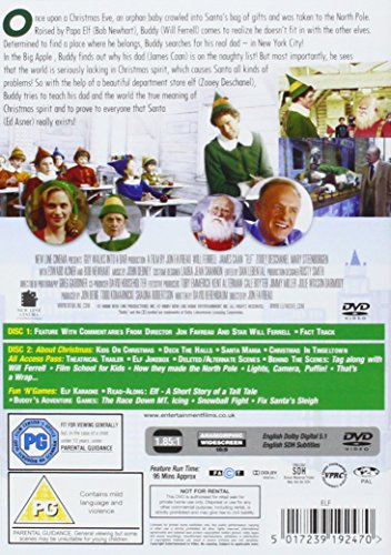 Description : New and Sealed, fast dispatch from the uk, worldwide postage specialists in DVD'sElf is genuinely good. Not just Saturday Night Live-movie good, when the movie has some funny bits but is basically an insult to humanity; Elf is a smartly written, skillfully directed, and deftly acted story of a human being adopted by Christmas elves who returns to the human world to find his father. And because the writing, directing, and acting are all genuinely good, Elf is also genuinely funny. Will Ferrell, as Buddy the adopted elf, is hysterically sincere. James Caan, as his rediscovered father, executes his surly dumbfoundedness with perfect aplomb. Zooey Deschanel, as a department store worker with whom Buddy falls in love, is adorably sardonic. Director Jon Favreau (Swingers) shepherds the movie through all the obligatory Christmas cliches and focuses on material that's sometimes subtle and consistently surprising. Frankly, Elf feels miraculous. Also featuring Mary Steenburgen, Bob Newhart, Pete...