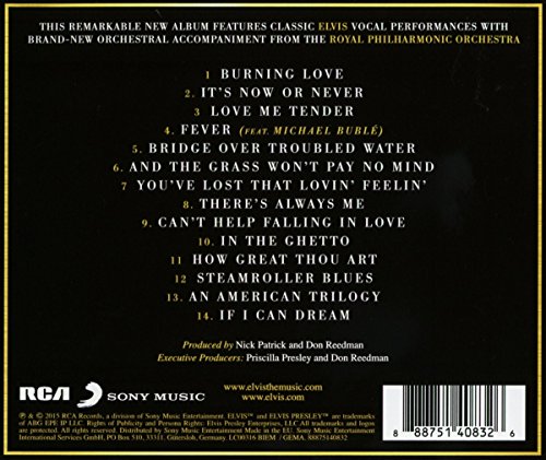 Description : 1. Burning Love 2. It's Now or Never 3. Love Me Tender 4. Fever 5. Bridge Over Troubled Water 6. And the Grass Won't Pay No Mind 7. You've Lost That Loving Feeling 8. There's Always Me 9. Can't Help Falling In Love 10. In the Ghetto 11. How Great Thou Art 12. Steamroller Blues 13. An American Trilogy 14. If I Can Dream